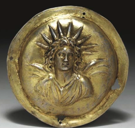 Gilt roundel with Alexander as Helios, 4th c BC