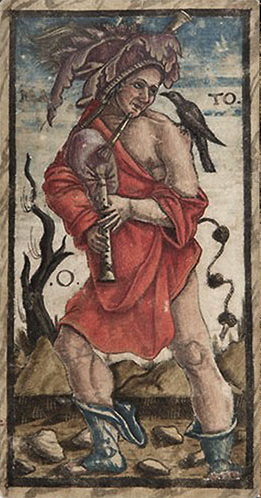 So this other side of Mars in Aries becomes apparent. Take a look at the opening image of the Sola Busca Fool/MATO card. I tend to avoid this deck precisely because it is so gory and feels heavily Martian/Saturnian. But how interesting that he has a crow (death) on his shoulder and walks through a barren wasteland, much like a battlefield. He wears red (Mars/blood) and plays a bagpipe, an instrument of war even before the Romans brought it to the British Isles. Hmm.