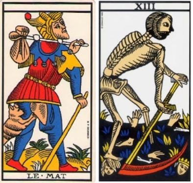Fool/Comedy and Death/Tragedy, flip sides, Grimaud Tarot de Marseille
