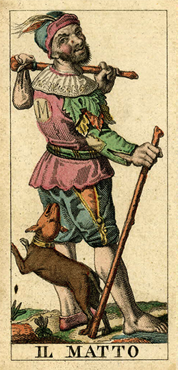 Mars is currently in the third/last decan of Aries. Depending on which decan system you use, the third is either ruled by Jupiter (most common), Venus or Gemini. Based on how it feels (trine my Sagi Moon), I have to go with the jovial one. A planet in late degrees exhibits an accumulative effect, similar to life experience, or lifetimes of experience. Perhaps this is the real meaning of the dog (or cat) who bites our Fool from behind, a past of aggression he is walking away from, un-attachment to old anger, pain and fear, as he heads into the great beyond. ~rb