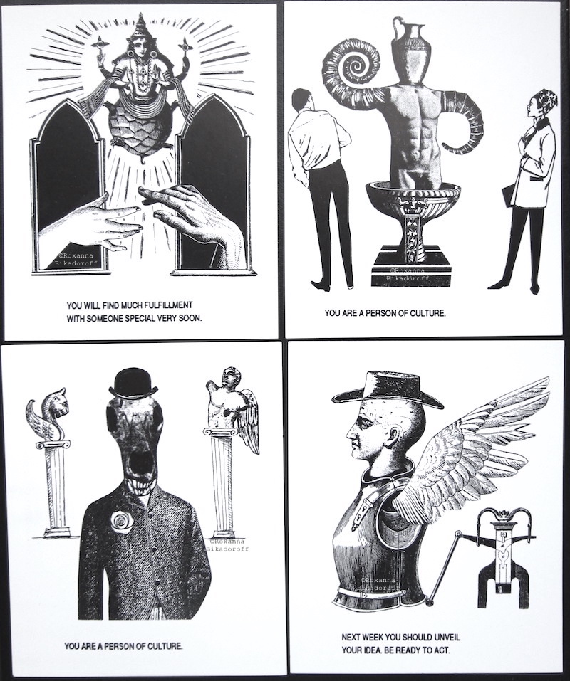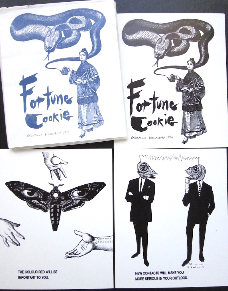 Back in 1994, when I made decent money as an editorial illustrator and had extra for personal projects and crazy promotional material…in the days before digital files, websites and steampunk, I created this little ‘deck’ of illustrated Fortune Cookie cards. It was indeed meant to evoke Victorian Orientalism, but was also inspired by Max Ernst collages and Edward Gorey, mixed with my own, somewhat goth-infused sensibility, for which I was then recognized.