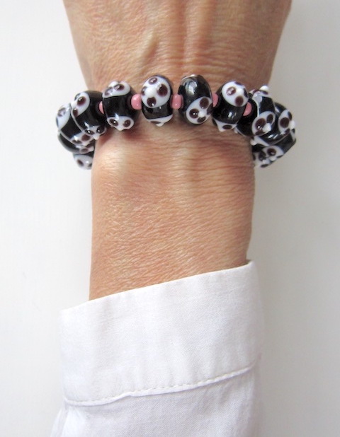 lovely floral lampwork bracelet and earring setclose up detail of fabulous lamp work beads
