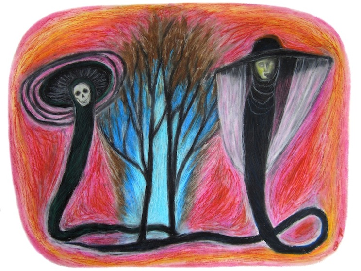 Keepers of the Blue Flame   [oil pastel on paper]            250.  +shipping
