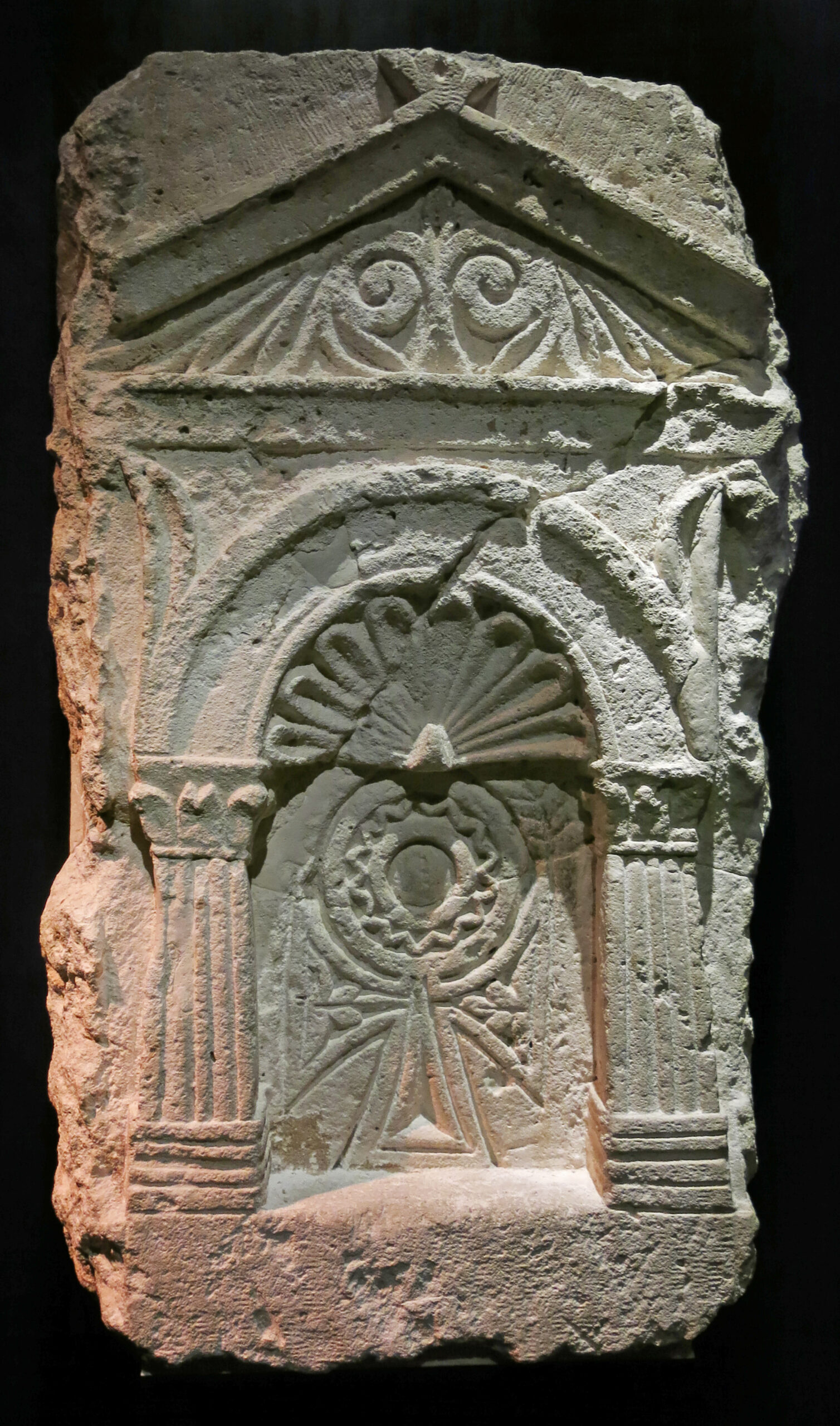 7th c (ca) Coptic tomb stela featuring ‘adapted’ Venus scallop and Isis ankh, symbols of everlasting life. [Munich Egyptian Museum  photo credit: Don Hitchcock/Don’s Maps]
