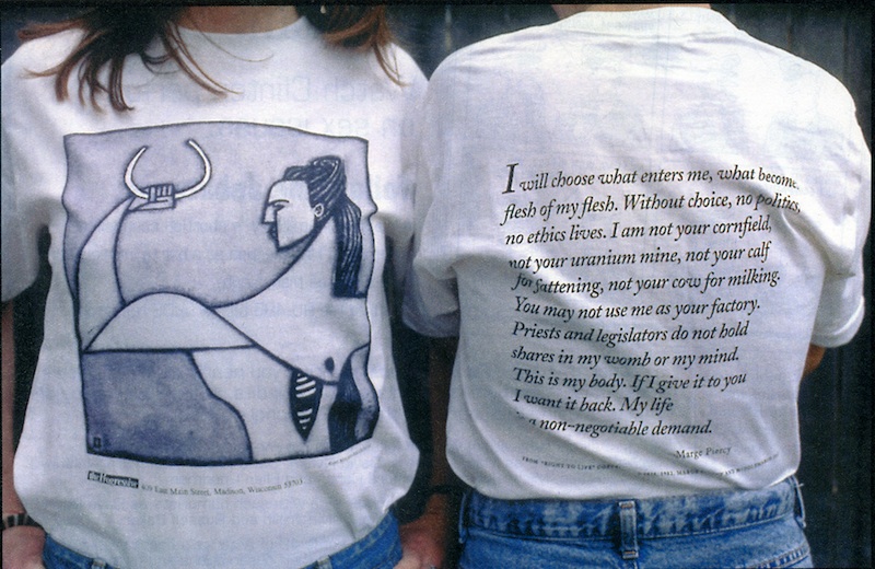 I will choose what enters me, what becomes flesh of my flesh. Without choice, no politics, no ethics lives. I am not your cornfield, not your uranium mine, not your calf for fattening, not your cow for milking. You may not use me as your factory. Priests and legislators do not hold shares in my womb or my mind. This is my body. If I give it to you I want it back. My life is a non-negotiable demand.