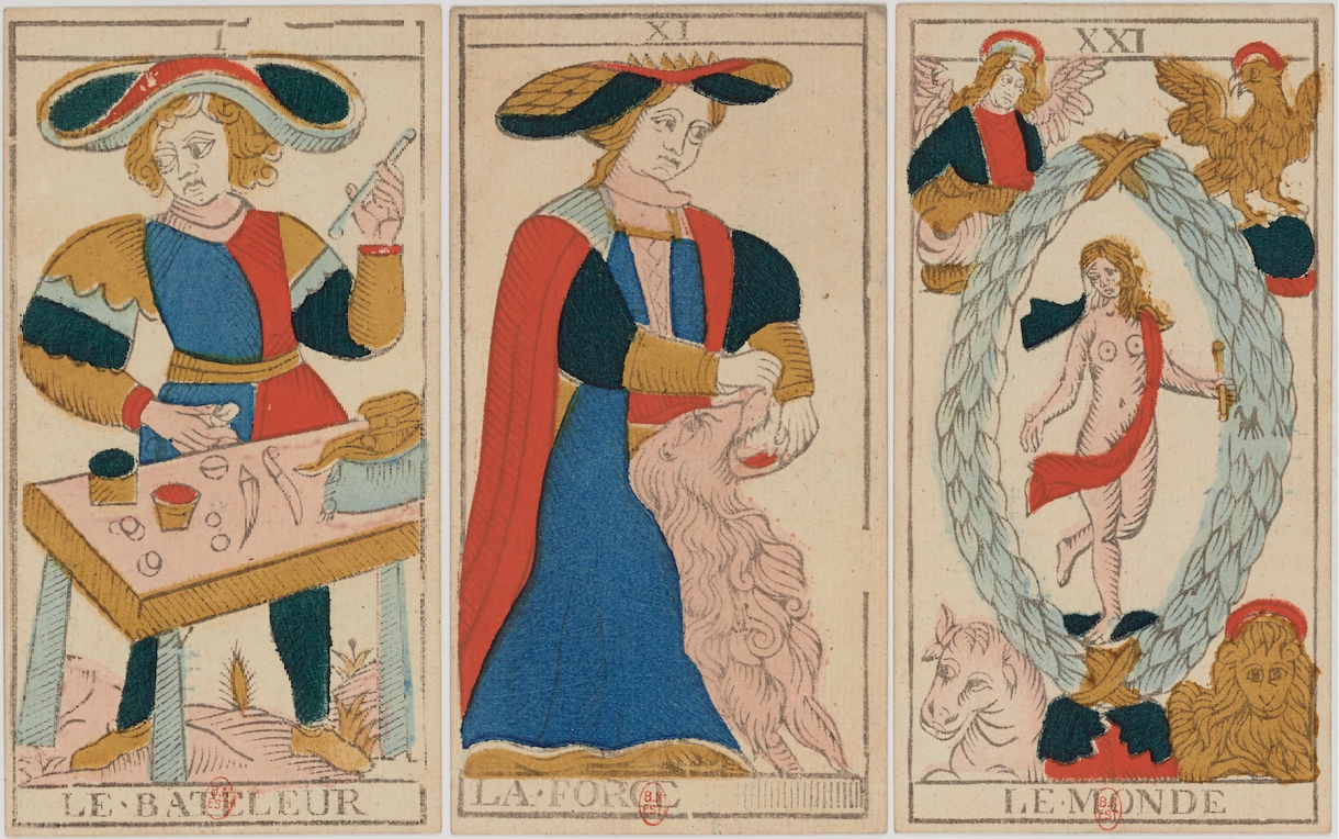 When we place all the numbered triumphs in a row, Strength/La Force is situated smack in the middle – a gateway or junction between earth and heaven, waking life and the intermediate state, or even just at midlife: