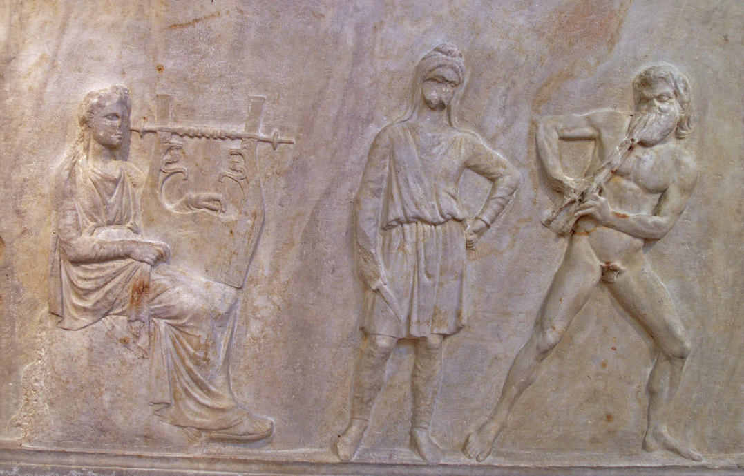Apollo, Marsyas and a Scythian waiting to flay him (relief, middle of the 4th century BC).