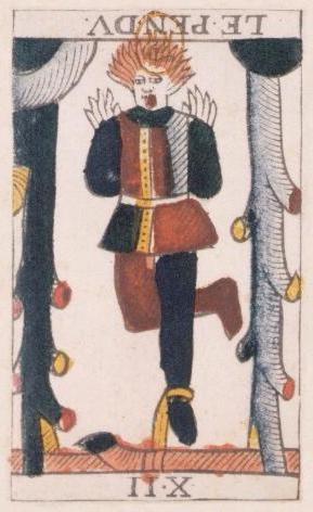 The Hanged Man (Le Pendu/Pandu) was once called ‘The Traitor’ and the figure held two money bags, a reference to Judas, aka Didymus, ‘the Twin’ (also a supposed redhead). We know the two cards are related, because 7 is 3 + 4 and 12 is 3 x 4. (3 and 4 began separately as Empress and Emperor).