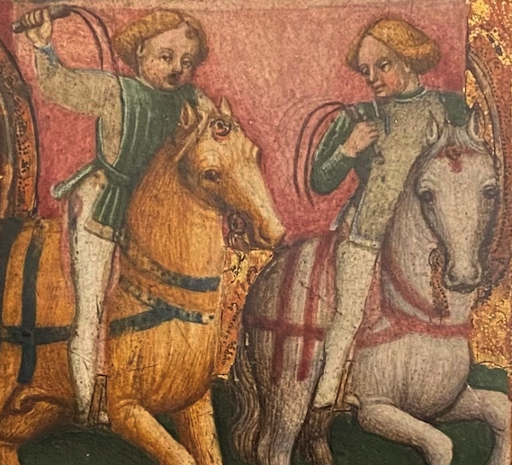 Jacques Vieville 2 of Cups and Hanged Man duality detailsChariot detail showing solar and lunar horses (anonymous, 15th c Milan)