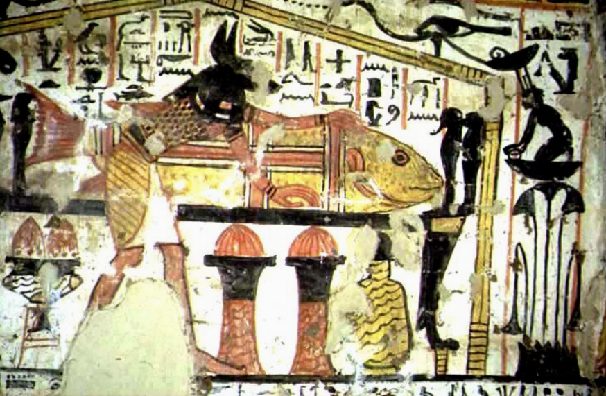 The image of the Sun sinking into and rising again from the water provided a natural metaphor for the concept of eternal life and was likely the visual inspiration for the ankh symbol (the word ‘ankh’ or ‘nkh’ itself being the active, magic component). The son/Sun fish is well-acquainted with the maternal mysteries and is therefor willing to sacrifice himself repeatedly. He will instruct the people in rituals by which to restore his life, and theirs. To the Celts, he was Tuan, to the Haida, Salmon Boy, to Christians, Jesus, but the myths are essentially the same.