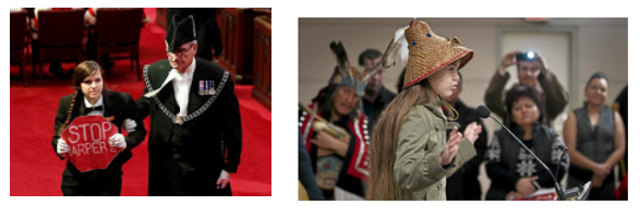 Top row: Ace of Swords (victory of truth), Joan d’Arc’s coat of Arms. Bottom: Brigitte DePape, the page who roared in the House of Commons and Ta’Kaiya Blaney, ten year old environmental activist/singer, speaking out against the proposed BC oil pipeline.