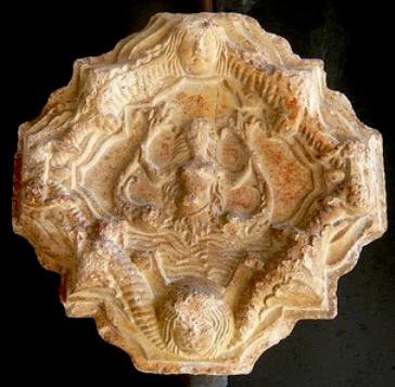 7th c (ca) Coptic tomb stela featuring ‘adapted’ Venus scallop and Isis ankh, symbols of everlasting life. [Munich Egyptian Museum photo credit: Don Hitchcock/Don’s Maps]