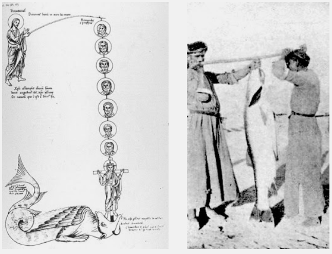 God baits the Devil with Jesus (The Ransom Theory of salvation), Tigris Salmon (actually a carp).