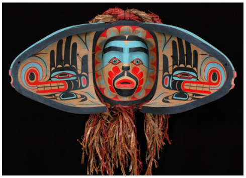 Sistiutl articulated salmon transformation mask by BC artist, Wayne Alfred